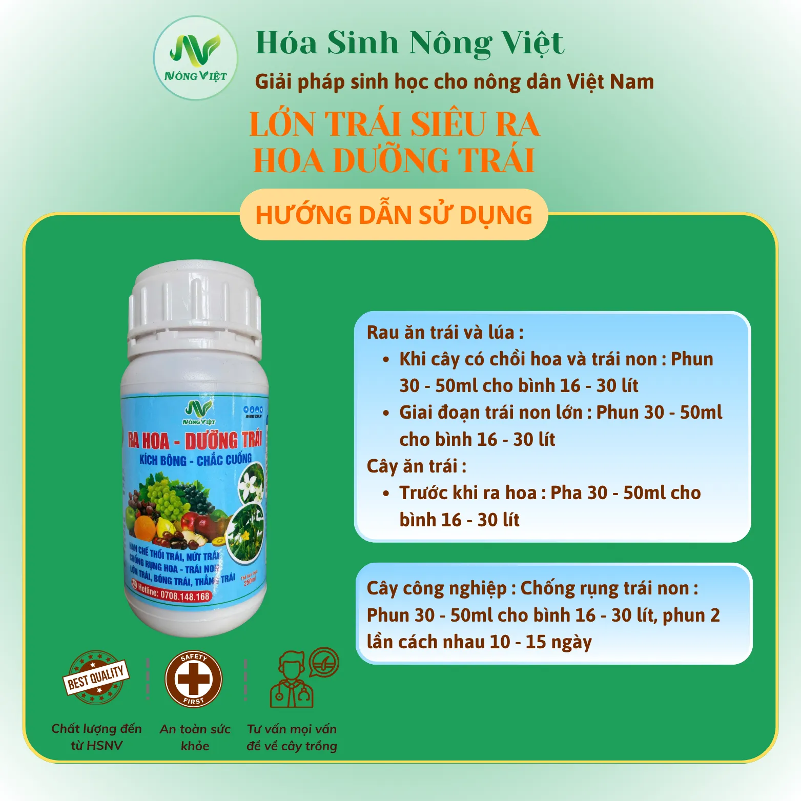 Công dụng chính: Kích bông – dưỡng trái – hạn chế rụng trái non