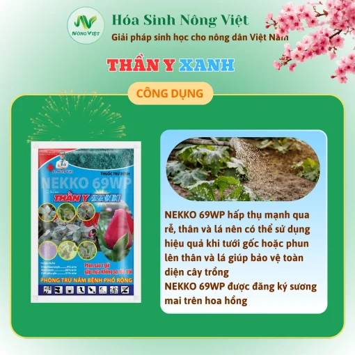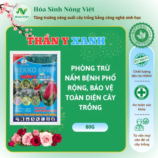 Thần Y Xanh là giải pháp chuyên dụng giúp kiểm soát và ngăn chặn các loại bệnh hại phổ biến trên cây trồng. Với khả năng hấp thụ nhanh qua rễ, thân và lá, sản phẩm giúp tiêu diệt mầm bệnh từ bên trong, đồng thời tạo lớp bảo vệ bên ngoài, hạn chế tái nhiễm.